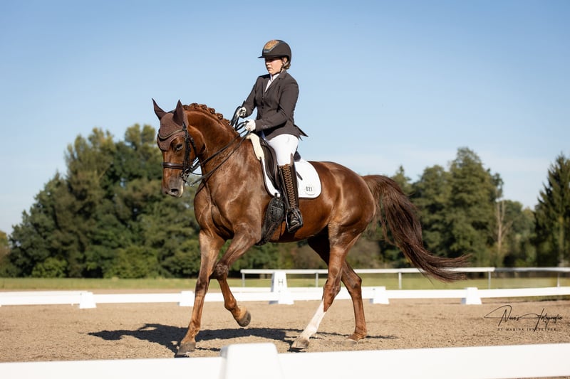 ⚜️Sweety⚜️ Hannoverian mare Sarotti-Mokka-Sahne x Brentano II Born: 2016 (9 years old) Height: approximately 17.1 hh Training level: placed up to M-level dressage Temperament: well-behaved, affectionate, uncomplicated Additional info: a true gem I am selling my elegant chestnut mare due to personal health reasons. She impresses with her impeccable character. In handling, she is absolutely well-behaved and fearless. Whether at competitions or in unfamiliar environments, she always stays focused and calm. Under saddle, she possesses the necessary energy and impulsion that a dressage horse should have. A fantastic sport partner for starting out or advancing in the discipline. Overall, a horse that brings joy every day. Placed in M-level amateur competitions in 2025. Registered in the main studbook of the Hanoverian Verband. Passed the mare performance test.