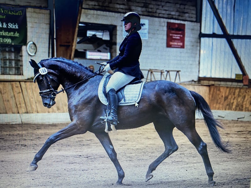 Wunderschöne großrahmige Rappstute L Dressur mehrfach platziert. Auch von kleineren Reitern einfach zu reiten. In der Stutenprüfung erhielt sie eine Note von 9,5 für die Rittigkeit von der Testreiterin vom Hannoveraner Verband. In der Zucht hat sie ein Ausnahmefohlen zur Welt gebracht, das für € 20.500,- über die Hannoveraner online Auktion als Absetzer nach Sevilla verkauft wurde.