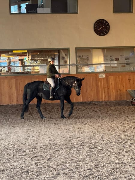 Schweren Herzens verkaufen wir unsere 10 jährige Hannoveranerstute von Schwarzgold x Don Frederico. Ihr Stockmaß beträgt 1,60. Bisher wurde sie als Zuchtstute eingesetzt und hatte drei Fohlen. Aktuell ist sie zum Anreiten bei Lisanne Hähndel. Im Training dort zeigt sie sich motiviert und mit ordentlich „Go“. Sie bringt alles mit, was man sich von einer zukünftigen Partnerin wünscht. Gleichzeitig ist sie sehr menschenbezogen, liebt ausgiebige Kuscheleinheiten und möchte ihrem Menschen einfach gefallen. Sie zeigt sich dort sehr lernwillig, aufmerksam und mit großem Potenzial für ihre weitere Ausbildung. Sie arbeitet motiviert mit und bringt viel Herz sowie eine positive Arbeitseinstellung mit. Aufgrund ihrer Sensibilität sucht sie eine liebevolle, aber konsequente Führung durch eine erfahrene Bezugsperson, die ihr Sicherheit gibt und sie fair weiter ausbildet. Bei passender Förderung entwickelt sie sich zu einer tollen Partnerin mit feinem Charakter. Eine Stute mit ganz viel Herz, die mit ihrem Menschen eng verbunden sein möchte. Im Januar/Februar 2026 war der Zahnarzt und die Osteopathin da. Reitvideos sind vorhanden und können auf Anfrage verschickt werden.