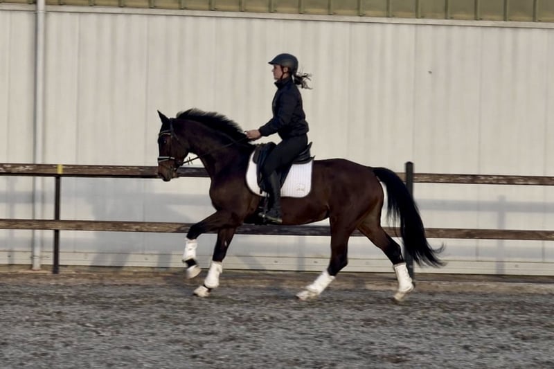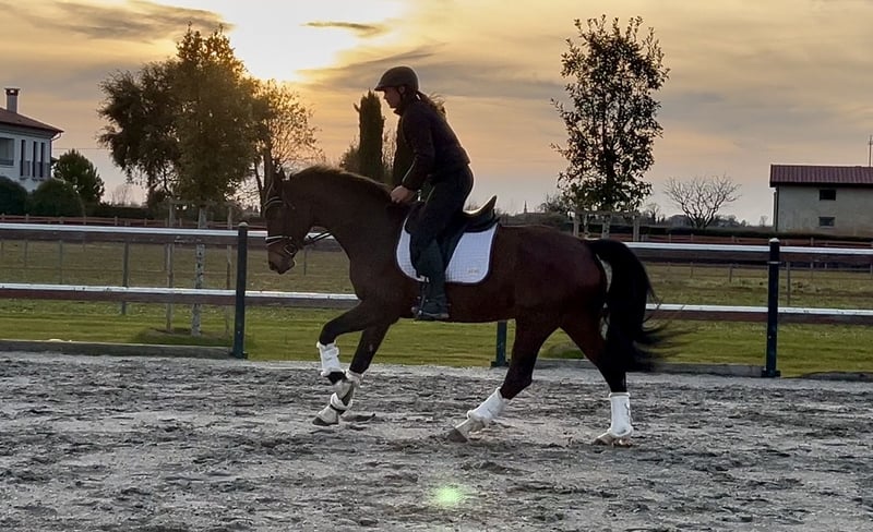 She is named Susi. Born in 2015, she is approximately 16.2 hh Hannoverian mare by Stalypso out of Espri. Susi is a true all-rounder. She demonstrates three excellent basic gaits, as well as great quality and bravery over fences. She has potential for the advanced level in both jumping and dressage. In dressage work, Susi is a real eye-catcher. Motivated, eager, and easy to ride. She also shows potential in lateral work and flying changes. The extended trot is already established. In jumping, Susi is a brave horse that approaches fences confidently. She has excellent manners, with plenty of talent and a high level of caution. She has competition experience up to: - Cross-country test A** - Show jumping test A** Placed in both dressage and jumping classes at A level, and victorious in A-class show jumping. Under the rider, the mare is generally well-behaved, forgiving of many mistakes, and eager to please. However, she can sometimes be startled and make a small jump sideways, so she may not be suitable for absolute beginners. She also requires regular work. In handling, Susi is a dream and very uncomplicated in everyday life. She loves being groomed and stroked extensively. Additionally, she is completely shoe- and loading-trustworthy. If you are looking for a high-quality, motivated horse with open doors in all disciplines, Susi is the right choice.