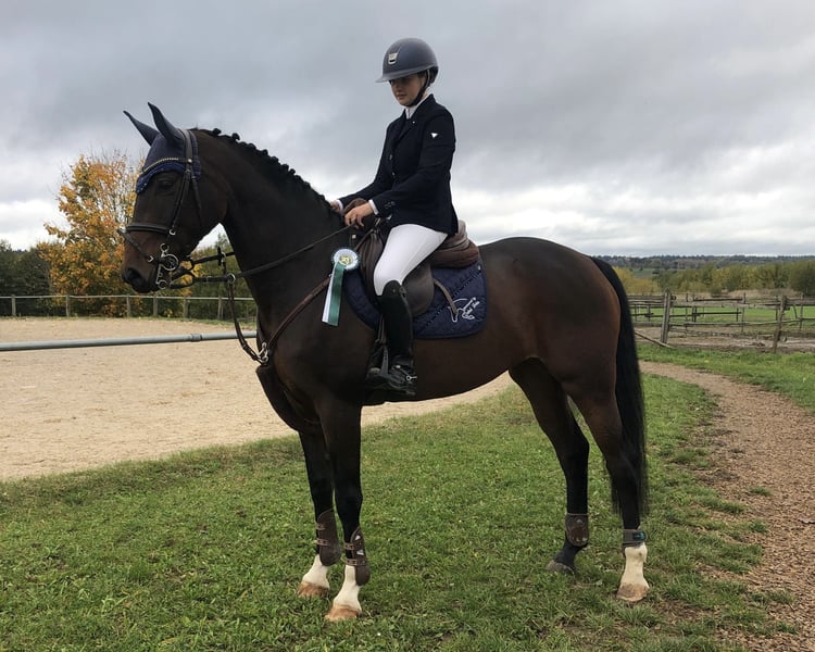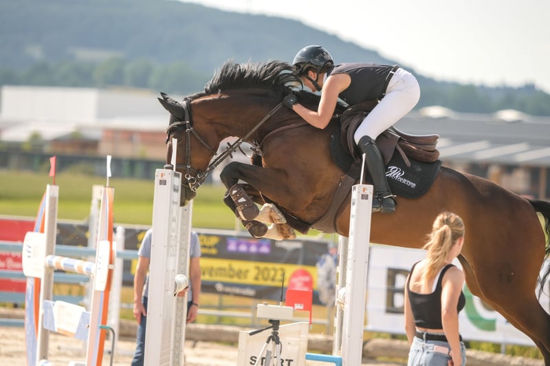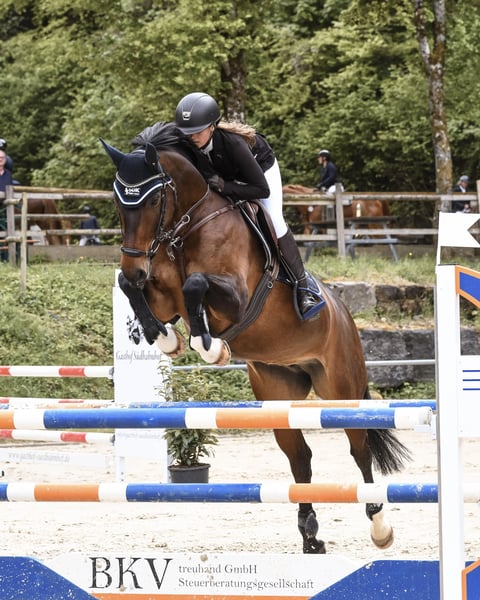 This beautiful, strong-nerved Hanoverian mare is for sale. The nine-year-old daughter of Cansendo (by Soliman de Hus) can boast victories up to medium (M*) level (1.25 m) and is ideally suited as an amateur horse for elementary (L) and medium (M) level. She is characterized in particular by her impressive performance and her reliability on the course. The mare is easy to handle and gets on well with other horses (used to being paddocked in small groups). She also has an impeccable MOT (status 2022). Please note: A lump sum of € 50.00 will be charged for the test ride (will be credited upon purchase).