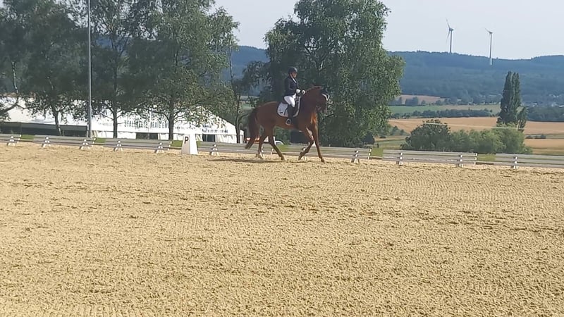 Se vende nuestra yegua Hannoveriana, criada y entrenada por nosotros, nacida en 2015. Se presenta con un brillante pelaje alazán y tiene una altura de 168 cm. Esta yegua tiene una inclinación versátil y ha obtenido colocaciones en doma y salto. Es tranquila en el manejo, bien educada y tiene un carácter amigable, lo que la convierte en una pareja ideal para jinetes ambiciosos. Actualmente, la monta mi sobrina (19 años), pero no es un caballo para principiantes. Si está interesado o necesita más información, no dude en ponerse en contacto conmigo. ¡Esperamos su mensaje!