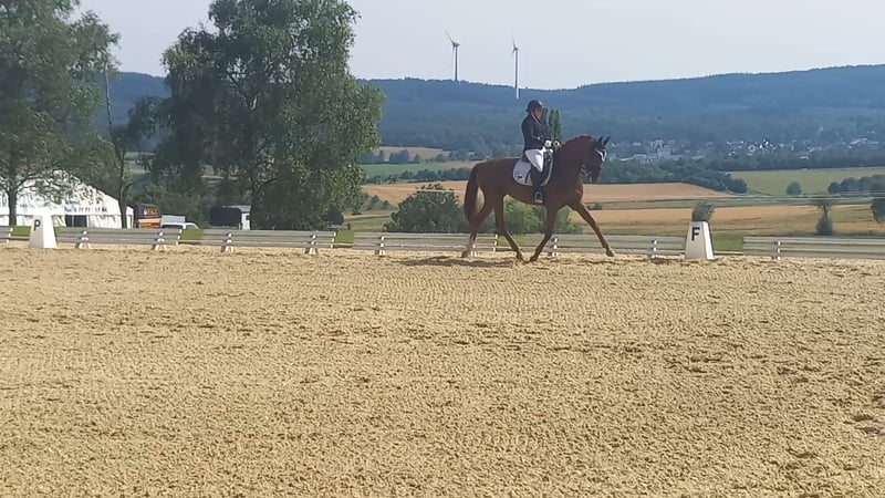 Se vende nuestra yegua Hannoveriana, criada y entrenada por nosotros, nacida en 2015. Se presenta con un brillante pelaje alazán y tiene una altura de 168 cm. Esta yegua tiene una inclinación versátil y ha obtenido colocaciones en doma y salto. Es tranquila en el manejo, bien educada y tiene un carácter amigable, lo que la convierte en una pareja ideal para jinetes ambiciosos. Actualmente, la monta mi sobrina (19 años), pero no es un caballo para principiantes. Si está interesado o necesita más información, no dude en ponerse en contacto conmigo. ¡Esperamos su mensaje!