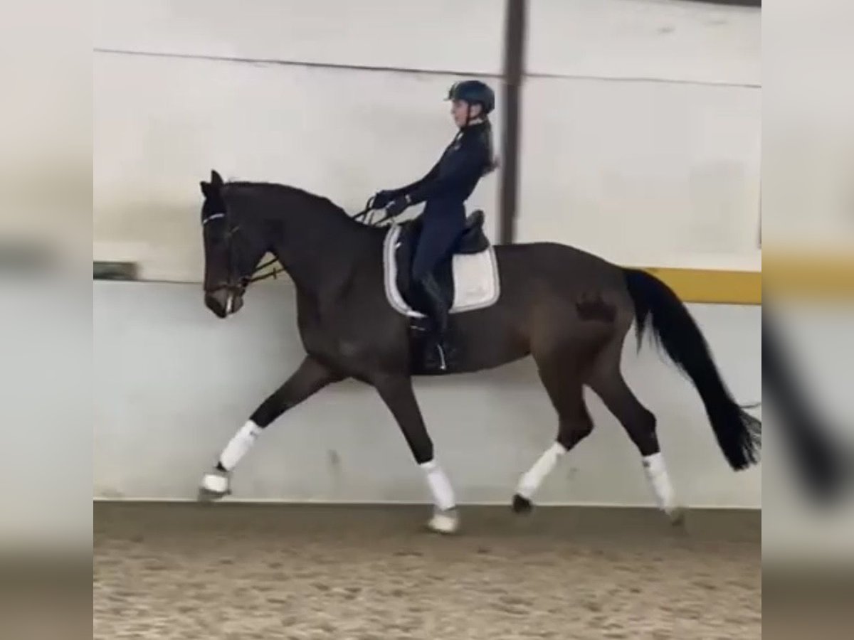 Cette jument de dressage est directement issue de l'élevage et est à vendre chez nous. Elle est formée jusqu'à la classe S, très confortable à monter et peut être montée par tout le monde.