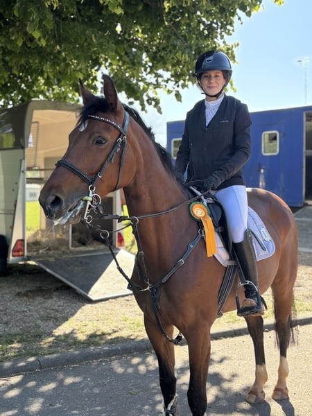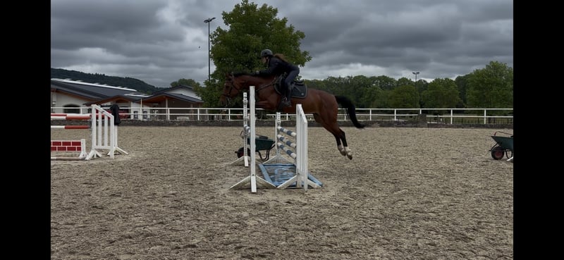 With a heavy heart, I am offering my beloved Hanoverian mare, Gem’s Little Sunshine, for sale. Due to my upcoming A-level exams, I no longer have the time to continue her athletic development. Serious inquiries only – this is not a desperate sale! She is placed at A-level, jumps L in training with confidence and ability, and has all the qualities for M-level. Her good scope over fences makes her the ideal partner for ambitious show jumpers. She can be ridden as needed with Pelham, water bridle, or pole bit. Also solidly trained in dressage and well-behaved in the outdoor. Always motivated in her work – she loves to perform. 💚 Character & Temperament - No bucking or rearing - Confident over fences, but easily controllable - Social within the herd - Farrier- and loading-trainable - Reliable in traffic 🧬 Pedigree - Sire: Gem of India – strongly jumping-oriented 🎯 Suitability - Riders aiming to progress in show jumping - Sporty leisure riders - Ambitious youth and adult riders 🎥 Test rides and introductions possible – I look forward to your message! Sunshine is waiting for a loving, encouraging home ☀️🐎