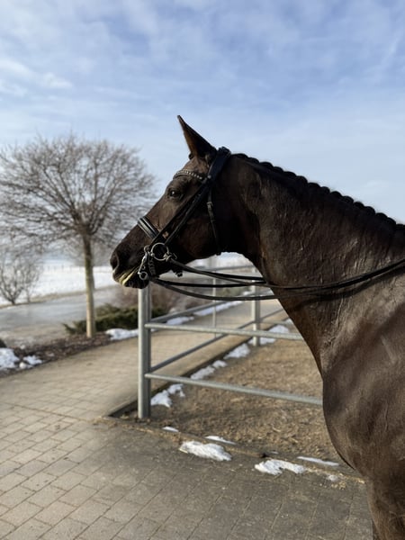Talented dressage mare with potential up to S*** For sale is a 2014 Hanoverian mare by Quantensprung out of a Symbol dam. Quabanashi has achieved placements in M** dressage competitions and has already been presented at S level. For approximately six months, she has been specifically prepared for Grand Prix movements and demonstrates great talent and eagerness to learn. She possesses a natural aptitude for piaffe and passage, making her an excellent candidate for consistent development toward S*** level. Her walk is absolutely rhythmical and steady, her trot expressive and lively, and her canter balanced with a strong willingness to collect. In handling, she is very well-behaved and uncomplicated. She can be ridden easily even by less experienced riders, always cooperative and honest, and is pleasant in daily handling. She enjoys hacking out and has fun with pole and cavaletti work. A sporty, rideable dressage mare with prospects for the higher classes, suitable for both ambitious amateurs and riders with advanced goals. The sale is made solely for private reasons. Further information, videos, and test rides are available upon request.
