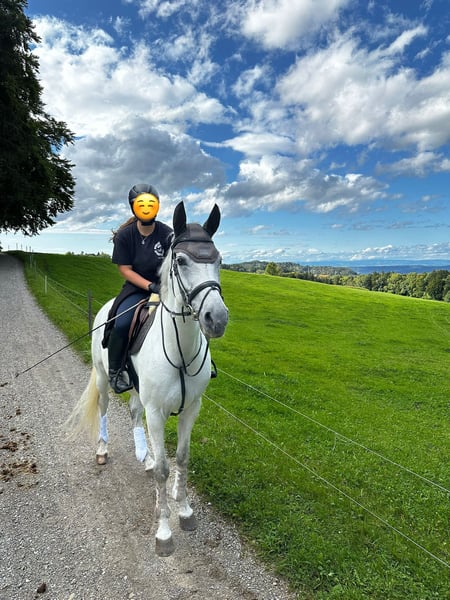 Shylara is a lovely 11-year-old Hanoverian mare with a gentle character and an elegant appearance. Sire: Spörcken; Dam Sire: Royal Diamond She is very well-behaved in daily handling – she does not bite or kick. Shylara is a sensitive horse that quickly perceives changes in her environment. At the same time, she is eager to learn, clear-minded, and always strives to please her handler. She is farrier- and loading-safe, and she is friendly and social with other horses. Currently, she is in a box with turnout, but I could also imagine her in an open stable. She loves her daily paddock or pasture time! Shylara is primarily trained in dressage and has competed in her past with her previous owner at levels L and M. Her repertoire includes flying changes, shoulder-in, and many other movements. She has pleasant basic gaits and a spacious, lively trot. She particularly enjoys hacking in the woods. In village or suburban environments, she can be a bit "curious" when alone and needs a confident, calm rider in those settings. Therefore, she is not suitable for beginners. In a group, she shows bravery. She has not been ridden in the dark, so a paddock or indoor arena at her new home would be ideal. The sale is with a heavy heart, as I do not feel I can do her justice as a rider. Additionally, my farm is located right in the center of Spreitenbach, which over time can be too much for a sensitive horse like Shylara due to the daily suburban hustle and bustle. Price: 16,000 CHF Further information via private message.