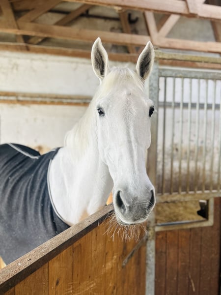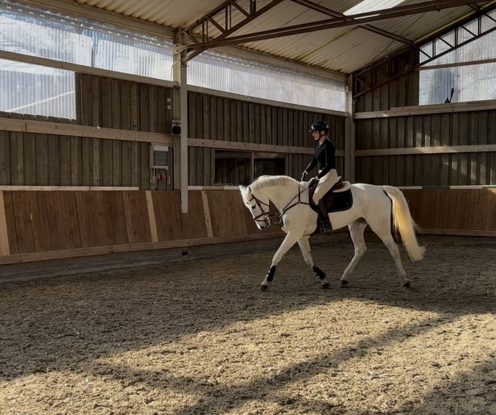 Zum Verkauf steht eine wunderschöne 13-jährige Schimmelstute, die nicht nur mit ihrem hübschen Erscheinungsbild, sondern vor allem mit ihrem absolut liebenswerten und zuverlässigem Charakter überzeugt. Sie ist super brav, entspannt, leichtrittig und dadurch wirklich für jeden geeignet – sowohl für ambitionierten Amateur als auch für Kind, das den Umstieg vom Pony auf ein Großpferd wagt. Mein 8-jähriger Sohn reitet sie sogar ohne Sattel, und kürzlich hat ein Anfänger-Kind seinen allerersten Sprung mit ihr absolviert (siehe Video) – beides meistert sie gelassen und zuverlässig. Sportlich bringt sie ebenfalls alles mit: Sie ist bis M-Springen platziert, hat L-Springen gewonnen und mehrfach platziert und ist damit das ideale Amateur- und Familienpferd. Auf Turnieren zeigt sie sich immer brav und anständig – auf dem Abreiteplatz mit entgegenkommenden Pferden hat sie keinerlei Probleme. Auch im Alltag ist sie ein absoluter Schatz: Sie ist geländesicher, geht alleine und mit anderen Pferden ins Gelände, ist verladefromm (Hänger und LKW), schmiedefromm (vier Eisen) und auch beim Scheren völlig unkompliziert. Sie kennt Führmaschine, liebt die Koppel und versteht sich auch mit anderen Pferden auf der Koppel. Gesundheitlich ist sie top fit: lückenloser Turnierverlauf, nie lahm (auch nach Angaben der Vorbesitzerin), sehr robust, Zähne wurden gerade gemacht, Impfstatus ist aktuell, klinische Untersuchung inkl Beugeproben aktuell erfolgt (10/25) und ohne Befund, Röntgen vorne bds. aktuell gemacht, alles top, kein Befund. Sowohl bei mir als auch beim Vorbesitzer war sie stets gesund und lahmfrei. Kein Ekzemerpferd. Keine Unarten. Aufgrund der guten Abstammung, könnte sich die Stute auch noch später optimal als Zuchtstute anbieten. MEHR VIDEOS gerne per Anfrage. Konnte nicht alle hochladen! Ich gebe sie ab, da ich den Turniersport aufgebe. Es ist mir wichtig, dass sie in ein schönes, liebevolles neues Zuhause kommt, in dem ihr toller Charakter, ihre Vielseitigkeit und ihr großes Herz geschätzt werden. Bitte Kontaktaufnahme über Handy, gerne telefonisch ;-) - Preis VB! Pferd steht aktuell in 97215 Simmershofen.
