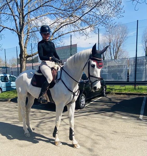 À vendre, une magnifique jument grise de 13 ans, qui séduit non seulement par son apparence charmante, mais surtout par son caractère absolument aimable et fiable. Elle est très gentille, détendue, facile à monter et convient donc vraiment à tout le monde – tant pour un amateur ambitieux que pour un enfant qui fait le passage du poney à un grand cheval. Mon fils de 8 ans la monte même sans selle, et récemment, un enfant débutant a réalisé son tout premier saut avec elle (voir vidéo) – elle gère tout cela avec calme et fiabilité. Sportivement, elle a également tout ce qu'il faut : elle est placée jusqu'en M (niveau moyen) en saut d'obstacles, a gagné en L (niveau léger) et a été plusieurs fois placée, ce qui en fait le cheval idéal pour les amateurs et les familles. Lors des compétitions, elle se montre toujours bien élevée et correcte – sur le paddock avec des chevaux venant en sens inverse, elle n’a aucun problème. Dans la vie quotidienne, elle est un véritable trésor : elle est sûre en extérieur, sort seule ou avec d'autres chevaux, est facile à charger (van et camion), est ferrée (quatre fers) et est également très simple lors de la tonte. Elle connaît la machine à mener, adore le pré et s'entend bien avec d'autres chevaux au pré. Sur le plan de la santé, elle est en pleine forme : parcours de compétition sans interruption, jamais boiteuse (selon les dires de l'ancienne propriétaire), très robuste, les dents viennent d'être faites, le statut vaccinal est à jour. Tant chez moi que chez l'ancienne propriétaire, elle a toujours été en bonne santé et sans boiterie. Pas de cheval allergique. Aucun vice. Un contrôle vétérinaire récent n'est pas disponible. En raison de sa bonne lignée, la jument pourrait également se prêter idéalement à la reproduction plus tard. Nous la cédons uniquement car je renonce au sport équestre. Il est important pour nous qu'elle trouve un nouveau foyer agréable et aimant, où son caractère exceptionnel, sa polyvalence et son grand cœur seront appréciés. Veuillez contacter uniquement par téléphone, de préférence par appel ;-) Le cheval se trouve à 97215 Simmershofen.