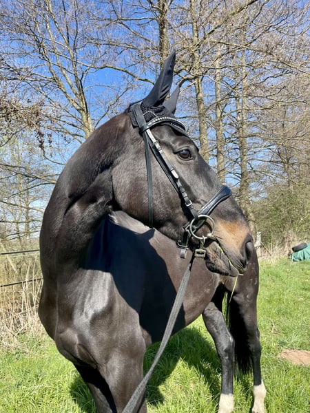 Ich verkaufe meine wunderschöne, großrahmige schwarze Stute. Sie ist ein echter Blickfang und überzeugt nicht nur durch ihre Erscheinung, sondern auch durch ihren tollen Charakter. Aktuell trägt sie vorne Eisen und ist aufgrund von Zeitmangel meinerseits momentan nicht im Training. Sie ist jedoch sehr gut vom Boden aus gearbeitet und zeigt sich stets brav im Umgang – sowohl beim Schmied als auch beim Tierarzt ist sie absolut unkompliziert. Die Stute ist aufmerksam und schaut sich ihre Umgebung gerne einmal genauer an, bleibt dabei aber immer gut händelbar. Besonders hervorzuheben sind ihre raumgreifende, schönen Gänge. Auch für die Zucht ist sie bestens geeignet: Sie hat bereits drei gesunde Fohlen zur Welt gebracht und sich dabei als zuverlässige Mutter erwiesen. Bei ernsthaftem Interesse oder weiteren Fragen freue ich mich über eine Nachricht.