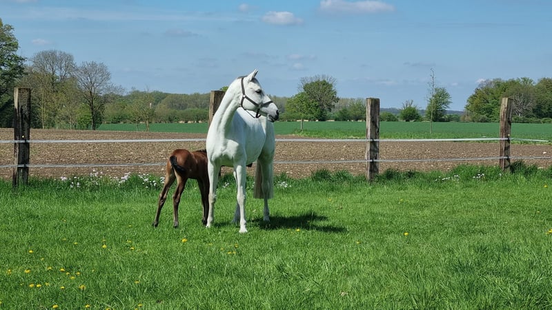 For sale is a lovely broodmare by Casino x Champion du Lys x Capitol I. The mare achieved success in show jumping competitions up to 1.30 m as a 5- and 6-year-old and was competed by a young rider in jumping classes up to 1.15 m from the age of 7. In 2024, she was bred due to an injury. In 2025, she foaled a fantastic foal by Chacco's Son I and proved to be an excellent mother. Due to a herd reduction, she was not re-bred this year and is now available for your breeding plans. (She was successfully covered on her first attempt). She is easy to handle, shoe- and loading-wise, and stands quietly. Please note: This mare is being sold solely as a broodmare (sales contract required).
