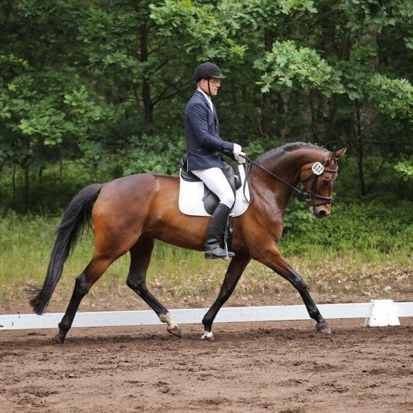 Jolie jument de 14 ans à céder, issue de la lignée Alferatestamm. Sa demi-sœur Livaldi est la mère de l'étalon Bon Vivaldi NRW, qui a récemment produit 2 vice-champions de la fédération. Sa demi-sœur Fräulein Florence est performante jusqu'à Inter1. La jument a été retirée du sport en raison de dommages au tendon et a été mise à la reproduction. Les photos montrent la jument lorsqu'elle était poulain, lors de compétitions de jeunes chevaux et avec un poulain de Bon Bolero à ses côtés (également à vendre). Elle est à nouveau pleine de Bon Bolero. Priorité à la qualité plutôt qu'au prix. Si vous avez des questions, n'hésitez pas à nous appeler ! 0172 - 44 15 444 (Hermann Kleemeyer)