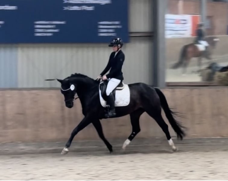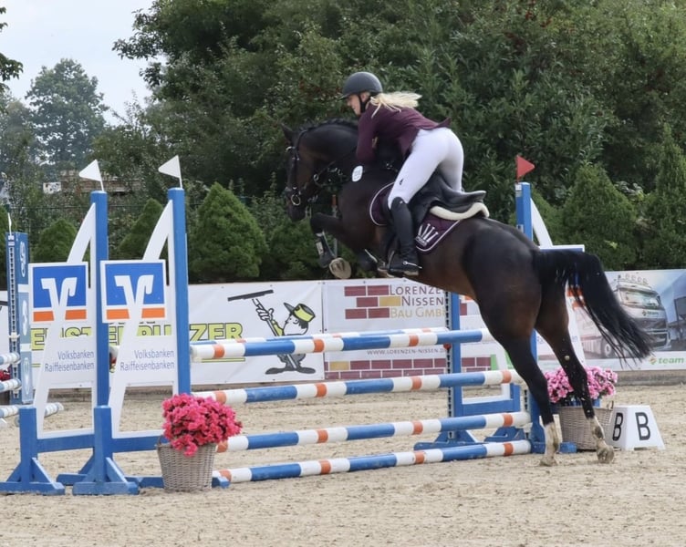 With a heavy heart, I now have to part ways with my 14-year-old mare (Fidertanz x Weltmeyer). Fio has always been my little all-rounder. She approaches everything with joy, makes good jumps, and always clears the fences. She also enjoys dressage work and hacking out. She is very well-behaved in handling and has no bad manners when ridden; however, a rider with solid A-level skills is recommended. Fio has been placed up to L** dressage and A* jumping with me. (L test qualified) - A full-cost insurance can be arranged. Additionally, a dressage saddle can be purchased for a small extra fee. - To prevent ride-and-run attempts, I charge €20 for a trial ride, which will be deducted from the purchase price if the horse is bought!