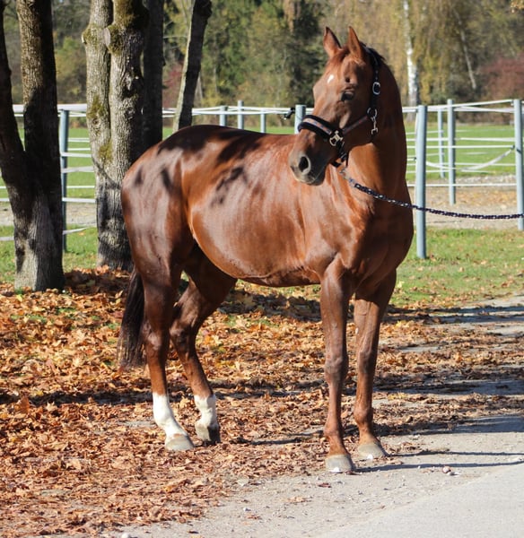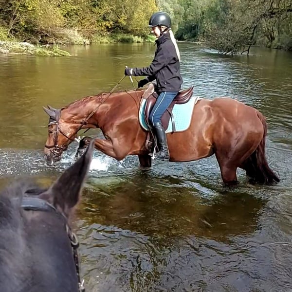 Ta elegancka 14-letnia klacz Hannoveraner o wzroście 163 cm łączy wyraziste ruchy, wysokiej jakości linie krwi oraz wrażliwy, zmotywowany charakter. Jest dobrze ugruntowana w podstawowym szkoleniu ujeżdżeniowym (E–A) i była głównie użytkowana rekreacyjnie. Chociaż nie ma doświadczenia w zawodach, prezentuje doskonałe podstawowe ruchy i solidne wykształcenie, co sprawia, że jazda z nią jest bardzo przyjemna. Szczególnie chętnie wybiera się na wycieczki terenowe, gdzie uważnie i z ciekawością eksploruje nowe ścieżki. Ze względu na jej wrażliwą naturę potrzebuje doświadczonego, empatycznego i uczciwego jeźdźca, który zapewni jej bezpieczeństwo i spokojne prowadzenie. Nie jest to koń dla początkujących, ale pod opieką doświadczonego jeźdźca rozwija się w lojalną i zmotywowaną partnerkę. Ze względu na osobiste powody sprzedaję ją z ciężkim sercem. W przeszłości miała epizody laminitis spowodowane leczeniem farmakologicznym, które jednak całkowicie się wygoiły. Od tego czasu jest stabilna i bez dolegliwości.