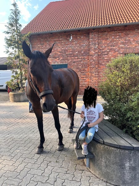 Unsere fast 15-jährige Hannoveraner Stute Venus befindet sich seit 10 Jahren in unserem Besitz und ist für uns ein ganz besonderes Herzenspferd. Aus persönlichen Gründen möchten wir sie nun stallgebunden zur Verfügung stellen und suchen eine zuverlässige, liebevolle Bezugsperson, die sich langfristig um sie kümmert. Eine spätere Übernahme ist möglich. Dressurmäßig befindet sie sich auf A-Niveau. Im Springen wurde sie bis A** mit steigenden Anforderungen vorgestellt und platziert. Ich selbst reite sie seit meinem 9. Lebensjahr. Venus zeigt sich im Umgang ausgesprochen brav und zuverlässig, sowohl bei Kindern, unerfahrenen Reitern als auch bei älteren Personen. Sie überzeugt durch ihr freundliches Wesen und ihre zuverlässige Art. Charakterlich ist sie eine sensible und feine Stute, die einen ruhigen, klaren Umgang schätzt und jede Form von Aufmerksamkeit genießt. Mit der richtigen Person an ihrer Seite ist sie ein treuer und motivierter Partner. Das zeigt sie auch im täglichen Umgang. Sie ist Tierarzt-, schmiede- und verladefromm, geht alleine sowie in der Gruppe ins Gelände und kann sowohl geritten als auch longiert werden. Bei Interesse freuen wir uns über eine Nachricht und einen persönlichen Austausch.