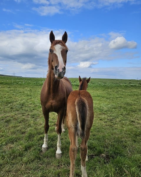 Verkaufe Hannoveraner Stute – Zuchtstute mit viel Potenzial Tragend für April 2026, von Vigado. Zum Verkauf steht eine elegante Hannoveraner Stute, geboren im Jahr 2010. Sie ist eine sehr hübsche, bunte Fuchsstute und besitzt 3 sehr gute GGA. Sie hat dieses Jahr bereits ein wunderschönes Hengst, von Corfu de la vie, zur Welt gebracht. (Siehe letztes Bild). Ich selbst bin sie bis 125cm Springen auf Turnieren geritten und habe etliche L Platzierung mit ihr gesammelt. Zudem ist sie geländesicher und genießt lange Ausritte, egal ob alleine oder in der Gruppe. Aufgrund dessen könnte ich sie mir, in der Zukunft, auch gut als souveränen Freizeitpartner oder für Einstieger in den Springsport vorstellen. Aktuell ist sie tragen von Vigado und muss im April 2026 Fohlen. Sie ist eingetragene Zuchtstute im Holsteinerverband. Bei Interesse oder weiteren Fragen stehe ich Ihnen gerne zur Verfügung.