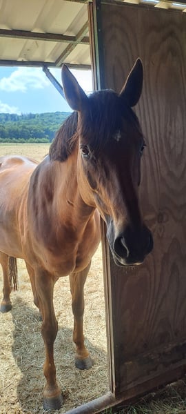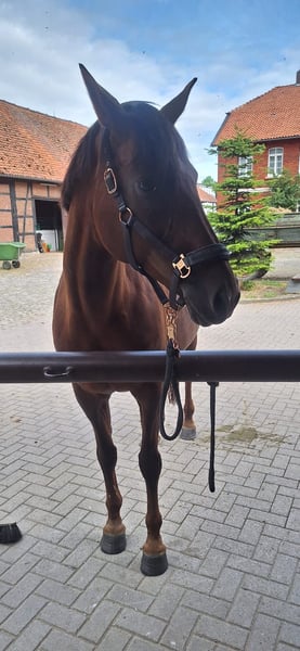 Aufgrund eines Pflegefalls in der Familie muss diese tolle Stute schweren Herzens in neue, gute Hände abgegeben werden. „Honey“, gen. „Hexe“, ist eine liebe Hannoveranerstute, die grds. alles gibt, um Aufgabenstellungen gerecht zu werden - egal ob vom Boden oder unter dem Sattel. Sie möchte jedoch gefordert und ausgelastet werden und testet stutentypisch auch mal ihren Reiter aus. Sie lernt gerne neues und dies auch schnell. Bei der Arbeit denkt sie stets mit. Hexe ist ehemaliges Springpferd. Ein wenig Turniererfahrung hat sie hier auch gesammelt. Nach einem Sehnenschaden am linken Vorderbein vor 6 Jahren ist sie wieder vollkommen fit, sollte jedoch keine hohen Sprünge mehr leisten müssen. Den Spaß am Springen und der Stangenarbeit hat sie nie verloren. Ausritte durch Wald und Feld liebt sie. Mit anderen Pferden kommt sie gut aus. Gegenüber Stuten zeigt sie sich dominant, Wallachen ordnet sie sich in der Regel unter. Kinder sind kein Problem. Hunde kennt sie. Für weitere Fotos/Videos/Informationen gerne einfach melden. Platz vor Preis. Kein Verkauf an Händler. Ausrüstung kann mit übernommen werden.
