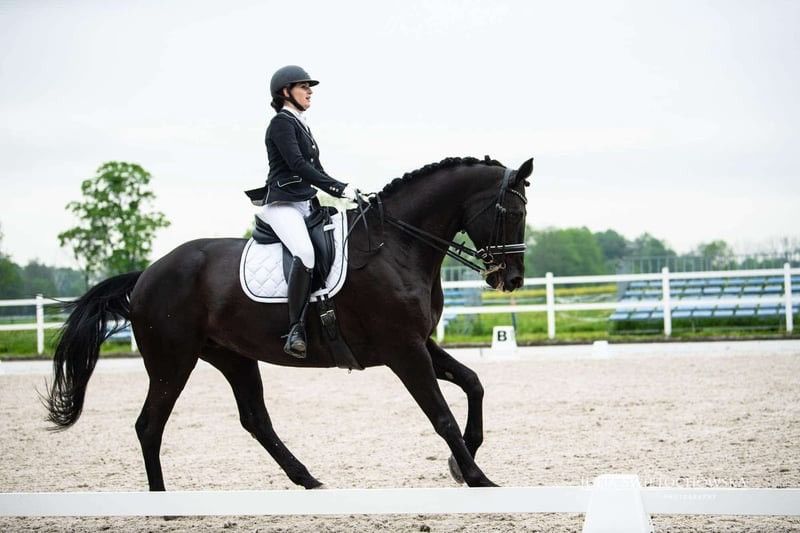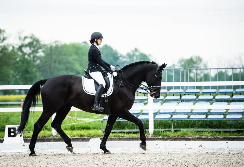 For sale: a beautiful black mare, ready to compete in the Small Tour. She has previously competed in local shows at C-level with a score of 65%. An ideal horse for a junior rider. Possibility to purchase with matching tack. Easy to handle on the ground, at the blacksmith, and during transport by horsebox. She works well on the lunge and is regularly turned out to pasture. Only available to responsible and experienced owners. Price is negotiable. Please feel free to contact me by phone for more information: +48 601 553 507