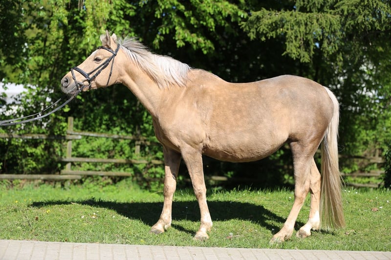 Sheila (Sugarbabe in the Dark) – entspannte Stute mit angenehmem Charakter Zum Verkauf steht die charmante Stute Sheila (Sugarbabe in the Dark), geboren 2009, mit einem geschätzten Stockmaß von ca. 1,45 m. Die erfahrene Stute überzeugt durch ihre ruhige und gelassene Art im täglichen Umgang. Sheila ist sowohl für Anfänger als auch für fortgeschrittene Reiter geeignet. Sie zeigt sich unter dem Sattel unkompliziert, gut händelbar und zuverlässig, ohne Unarten beim Reiten. Sie ist eher gemütlich unterwegs, lässt sich jedoch gut motivieren und arbeitet unter dem Reiter angenehm mit. Damit eignet sie sich besonders für Reiter, die ein ruhiges, ehrliches Pferd für entspannte Arbeit und Freizeit suchen. Im Umgang ist Sheila grundsätzlich brav, kann jedoch gelegentlich dazu neigen beim Putzen oder Satteln zu schnappen. Dies sollte entsprechend beachtet und im Handling klar, aber ruhig korrigiert werden. Eine freundliche Stute mit solider Grundausbildung und angenehmem Wesen für den täglichen Reiteinsatz. Sheila befindet sich nach einer Verletzungspause aufgrund einer Sehnenverletzung derzeit im Aufbau. Wir können derzeit nicht sagen, inwieweit sie in der Zukunft belastbar sein wird. Momentan wird mit ihr mehrmals die Woche leicht unter dem Sattel gearbeitet (Schritt/Trab/Galopp). Aufgrund der Ungewissheit möchten wir sie derzeit als bedingt reitbaren Beisteller abgeben.