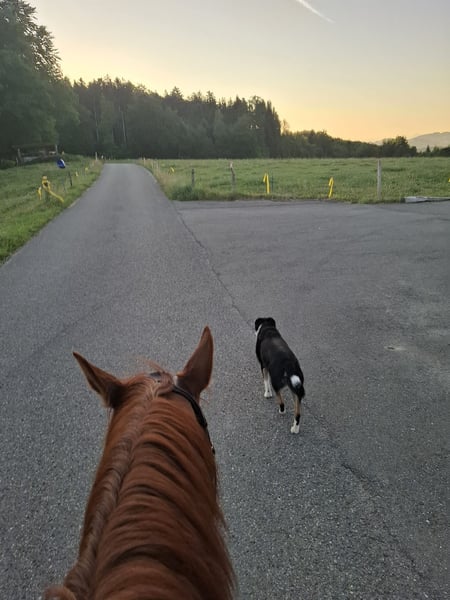 Suche für meine liebe Hannoveraner Stute einen Lebensplatz -Jg. 2009 -165 cm -Standort: SG -verträglich mit Stuten und Wallachen -Preis ist Nebensache, die Menschen und die Haltungsbedingungen müssen passen Sie kann ausgeritten werden am langen Zügel ohne Einschränkungen. Sie hat unfallbedingt seit 10 Jahren Probleme mit der seitlichen Biegung am Zügel, deshalb ist die Arbeit auf dem Platz nicht mehr gut für sie. Vom Tierarzt und Physio ist alles abgeklärt und sie meinen auch, dass Ausritte unbedingt wichtig sind für sie 🥰 Sie liebt lange Ausritte, ist sehr brav, wenn sie einem vertraut. Sie ist verkehrssicher und läuft überall durch. Das einzige, was ihr Mühe bereitet, sind rennende Kühe. Wenn man sie vorbeiführt, geht es besser, im Sattel sollte man sicher sein. Zu Fuss geht sie ganz brav am Halfter mit. Hunde liebt sie 😍 Sie braucht täglichen, längeren Auslauf mit Kumpels, da sie sich das gewöhnt ist. Sie war bisher unkompliziert mit verschiedenen Stuten und Wallachen. Ich gebe sie krankheitsbedingt ab und da der Stall sich auflöst, wo sie täglich viel draussen sein kann. Ich wünsche mir einen Platz, wo sie wieder viel Auslauf zur Verfügung hat und jemand sich liebevoll um sie kümmert.