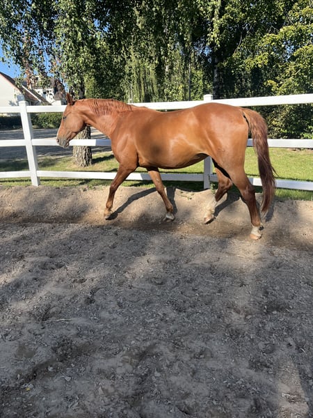 Klacz Hannoveraner, 17 lat, linia Weltmeyera Z ciężkim sercem sprzedaję moją klacz, ponieważ moje serce coraz bardziej skłania się ku sportom motorowym niż jeździectwu. • Wiek / Rodowód: 17 lat, linia Weltmeyera, wzrost 170 cm • Zdrowie: od czwartego roku życia ślepota na jedno oko, (okresowe zapalenie oka zostało wtedy niestety wykryte i leczone z opóźnieniem, szczególnie w przypadku jednego oka) zdrowe oko jest bez zmian (wówczas wymieniono wodę z oka). Oko, które jest już niewidzące, nadal jest w ciele i nie sprawia problemów! (Musi w lecie nosić maskę na owady). Dotychczas nie była poważnie chora, nie miała kolki. • Użytkowanie: nie jest to koń dla początkujących, odpowiednia dla doświadczonych jeźdźców z opanowaną ręką i spokojną postawą. • Charakter: wrażliwa, potrzebuje jeźdźca, który zapewni jej poczucie bezpieczeństwa. Po zyskaniu jej zaufania, jest to koń idealny na partnera do jazdy. • Dyscyplina: raczej ukierunkowana na ujeżdżenie, potrafi także pokonać niewielkie przeszkody. Możliwa jazda w terenie z towarzyszącym koniem. • Hodowla: przyzwyczajona do stajni zamkniętej i padoku otwartego. • Hodowla: dotychczas nie miała źrebięcia. Jest jeźdzalna na placu (nawet przy hałaśliwych końach obok), zachowuje się tam pewnie. Doskonała do rekreacji, szczególnie do ujeżdżenia. Pod odpowiednim jeźdźcem ma naprawdę piękne chodzenie i nie zachowuje się nieodpowiednio, np. nie kłusuje bez powodu. U mnie i u mojej trenerki nigdy nie kłusowała bez powodu. Przy słabszym jeźdźcu może dojść do zrzutu. Taki przypadek miał miejsce podczas jazdy próbnej (np. w ramach jazdy konnej na wynajem). W pełni zaszczepiona, zęby będą ponownie sprawdzane w połowie grudnia, kopyta co 6 tygodni pielęgnuje podkuwacz. Jako klacz hodowlana również świetnie się sprawdzi! Oddaję tylko w najlepsze ręce! Wszystkie faktury od weterynarza od 2022 roku są dostępne i chętnie można je obejrzeć. Brak pilnej sprzedaży!! Proszę nie pytać hodowców ani szkół jeździeckich! Cena obejmuje wyposażenie (siodło, ogłowie, kuferek na akcesoria, derki). Chcę całkowicie wycofać się z jeździectwa!