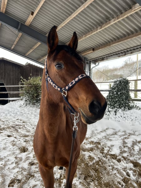 Schweren Herzens suche ich für meine 19-jährige Hannoveraner Stute Ella ein neues Zuhause, da wir Nachwuchs erwarten und ich ihr zeitlich nicht mehr gerecht werden kann. Ella hat ein Stockmaß von ca. 1,60–1,62 m und ist ein vielseitiges Freizeitpferd und Allrounder. Ob in der Halle, bei der Dressurarbeit, im Gelände, an der Longe, bei der Bodenarbeit oder auch bei kleinen Sprüngen – Ella macht alles motiviert und zuverlässig mit. ✨ Das zeichnet Ella aus: • fein geritten, ca. A-Niveau, mit Ansätzen bis L (Vorbesitzerin) • sensibel an den Hilfen und lehrreich für ihren Reiter • zuverlässig unterm Sattel – kein Buckeln oder Durchgehen • charakterstark und testet anfangs, braucht daher klare, sichere Führung • bei konsequentem Umgang absolut verlässlich Ella ist kein Anfänger- oder reines Kinderpferd, zumindest nicht für das selbstständige Reiten. Mit sicherem, ruhigem Reiter zeigt sie jedoch ihr tolles Wesen. In meinem Beisein sind auch Kinder auf ihr geritten. Fremden gegenüber ist sie anfangs manchmal etwas skeptisch, taut aber mit etwas Zeit und Vertrauen schnell auf. 🩺 Gesundheit & Haltung: • aktuell barhuf, im Gelände mit Hufschuhen, die sie problemlos trägt • kennt auch Eisen, ist dabei artig beim Hufschmied, sofern kalt beschlagen wird • regelmäßig geimpft & osteopathisch behandelt • bekannt ist EOTRH (Zahnkrankheit) 💪 Fitness & Alltag: Ella ist fit und wird aktuell von mir und meiner Reitbeteiligung ca. 5x pro Woche bewegt. Diese regelmäßige Arbeit braucht sie auch für ihre Kopfauslastung und ist damit sehr zufrieden. Altersbedingt merkt man ihr manchmal an, dass sie eine vernünftige Aufwärmphase benötigt, um locker zu werden. 🏠 Haltung & Transport: • steht aktuell in einer Box mit eigenem Paddock, kennt aber auch reine Boxenhaltung • ist bei mir selten Hänger gefahren, bei der Vorbesitzerin jedoch problemlos – müsste ggf. wieder etwas geübt werden. Ich wünsche mir für sie einen verlässlichen Menschen, der ihr ein abwechslungsreiches, liebevolles Zuhause bietet – am besten auf Lebenszeit. Anfragen können gerne auch telefonisch beantwortet werden 017624641348. Meike