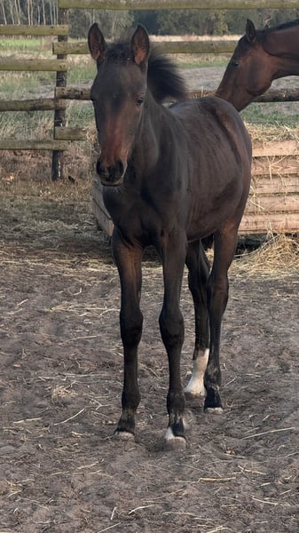 Hannoverian Arabian Mare – Versatility Talent Weltano / Weltmeier / Gloster For sale is an elegant and promising Hannoverian mare, born in 2025. With her dark bay coat and a height of 16.1 hh, she combines classic beauty with impressive size. This talented mare is well-suited for eventing and already demonstrates promising abilities. She is friendly, eager to learn, and has a pronounced temperament, making her an ideal partner for ambitious riders. Please feel free to contact me for more information or to arrange a viewing.