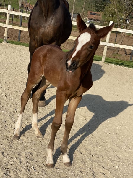 Dieses Hannoveraner Stutfohlen von Sir Donnerhall entstammt einer konsequent durchgezogenen Dressurlinie, in der Qualität, Leistungsbereitschaft und klassische hannoversche Werte im Mittelpunkt stehen. Sir Donnerhall prägt seine Nachkommen mit Ausdruck, Eleganz und hervorragender Rittigkeit – Eigenschaften, die ihn zu einem der gefragtesten Dressurvererber machen. Die Mutterlinie ergänzt diese Veranlagung ideal: Benetton Dream bringt Elastizität und moderne Bewegungsmechanik ein, während Weltmeyer für Substanz, Tragkraft und Verlässlichkeit steht. Das Stutfohlen zeigt sich bereits jetzt mit viel Typ, Harmonie und sehr guten Grundgangarten. Der schwungvolle Bewegungsablauf, die natürliche Selbsthaltung und die klare Dressurveranlagung lassen auf eine vielversprechende sportliche Zukunft schließen. Ein hochwertiges Nachwuchspferd für anspruchsvolle Züchter und Reiter, die Wert auf bewährte Genetik, Qualität und nachhaltige Dressurvererbung legen.
