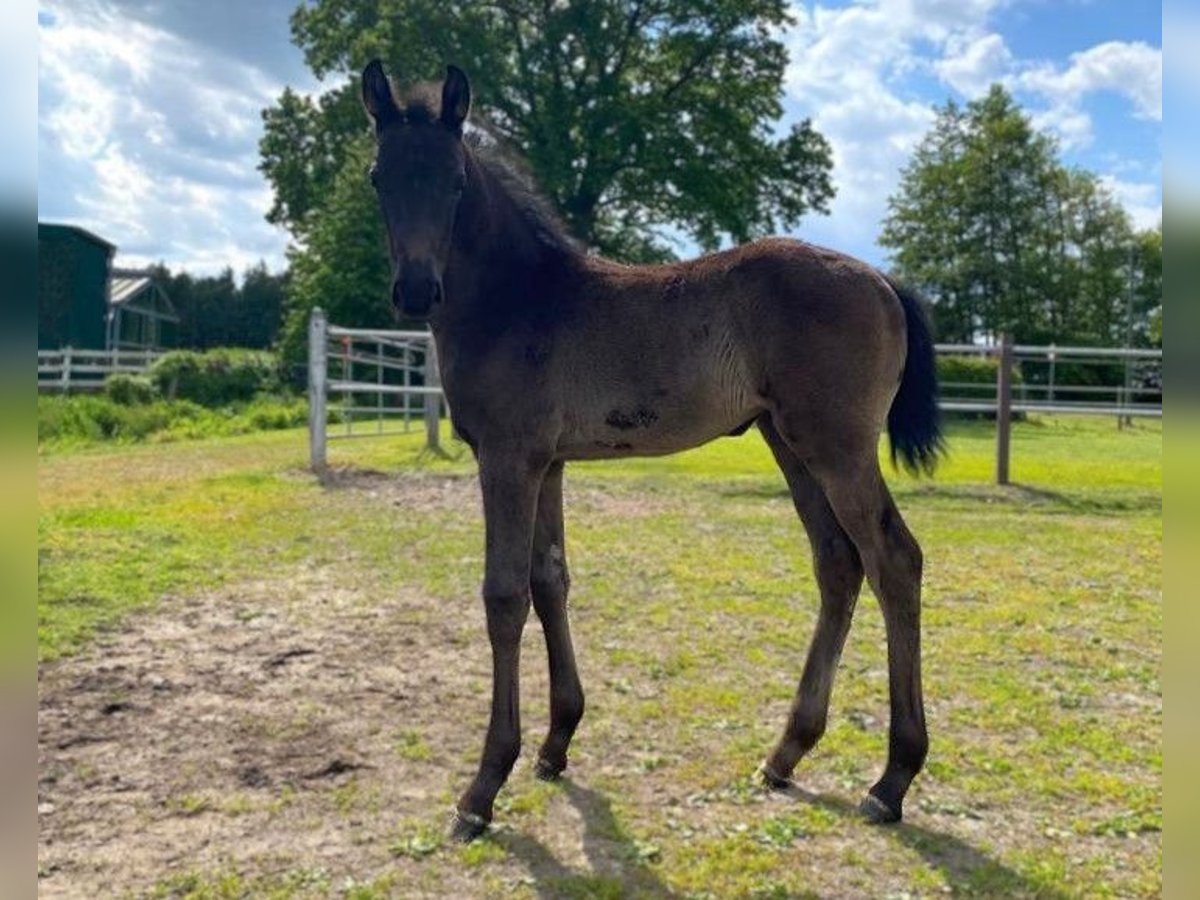 Typical premium foal with champion genetics – best foal of the Prignitz Horse Breeding Association! This beautiful foal has been rated with an outstanding 25.5 points and carries the title of Champion Foal 2025 of the Prignitz Horse Breeding Association. It impresses with exceptional movement quality, modern type, correct conformation, and an elegant appearance in a dark coat. Charm, expression, and presence make it a true eye-catcher. First-class pedigree: The mother is a premium mare, whose previous offspring have all been awarded – a testament to the consistent breeding quality of this line. Through Don Bolero by Donnerhall, she brings valuable Grand Prix genetics into the lineage. The sire is the still young Most Wanted Nero by Bellin. He is one of the most promising sons of the great Morricone. Since 2025, he has been exclusively promoted by Leoni Richter, after impressing with consistently high scores in his first dressage horse tests and placing regularly. We are convinced that Most Wanted Nero's exceptional talent and rideability will also be passed on to this foal. The foal is growing up under the best conditions, with loving care, plenty of turnout, regular hoof care, and proper deworming. If desired, the sale of both mare and foal as a pair is also possible. We look forward to your interest and are happy to arrange a personal meeting. Feel free to contact us via WhatsApp: +49 176 55323449.