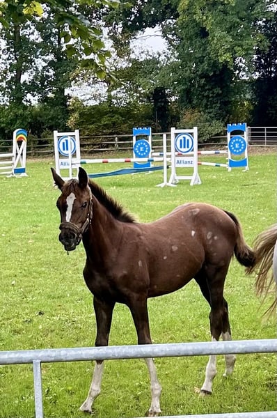 Zum verkauf steht diese besonders schöne Jährlingsstute von Cador x Casillas x Silvio. Groß gewachsen überzeugt sie mit einem kraftvollen und raumgreifenden Bewegungsablauf in allen drei Grundgangarten. Die Mutter hat S* Springen gewonnen. Direkt vom Züchter, geboren am 27.04.2025.