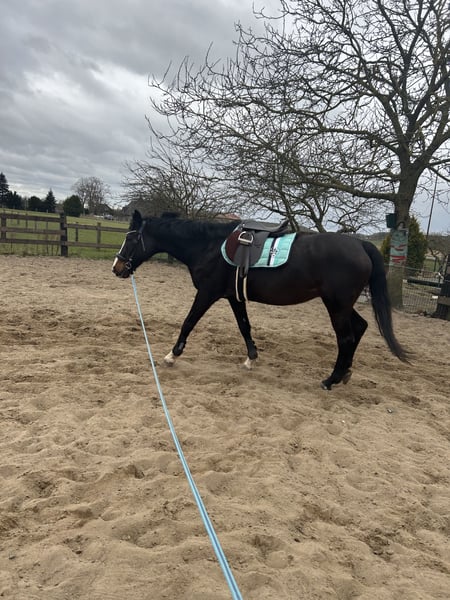 Schweren Herzens muss ich mich von meiner lieben Hannoveraner Stute Grandessa trennen. Sie ist 20 Jahre alt und 1,60m groß - eine wunderschöne Stute mit einem sanften Wesen. • Sehr lieb und umgänglich im täglichen Umgang • Läuft barhuf und ist daran gewöhnt • Derzeit nicht geritten, kann aber wieder antrainiert werden • Keine bekannten Krankheiten • Gesund und munter Das passende Zubehör kann gerne mit übernommen werden - vieles davon ist noch neuwertig und kaum benutzt. Grandessa sucht ein liebevolles neues Zuhause, wo sie die Aufmerksamkeit bekommt, die sie verdient. Bei Fragen melde dich gerne.