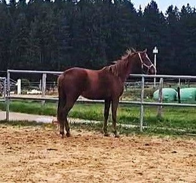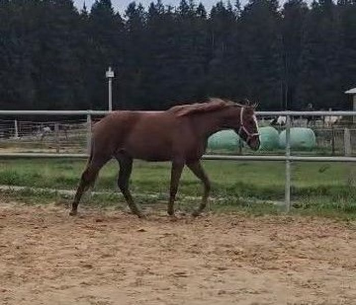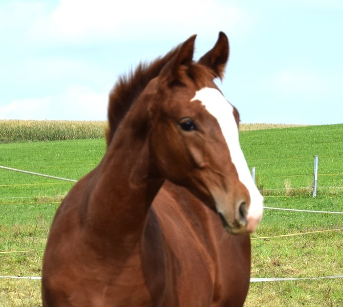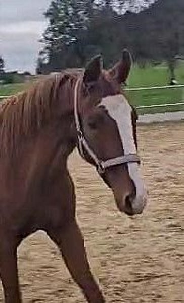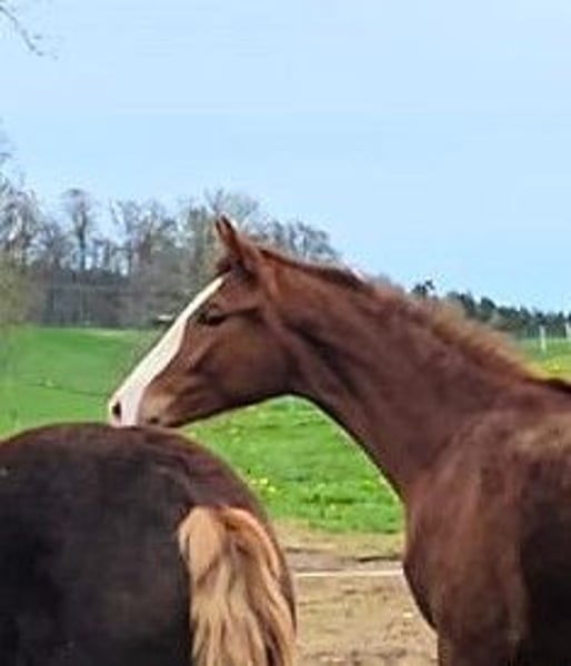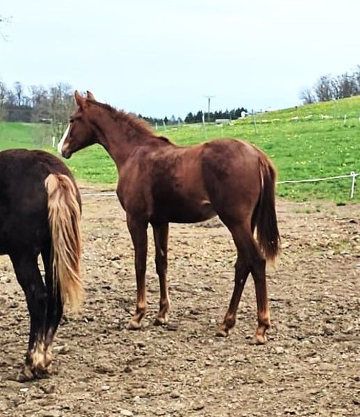 Wegen Aufgabe der Pferdezucht, aus gesundheitlichen Gründen meinerseits, steht dieses langbeinige 2-jährige Stute von ESCANTO PS x BENICIO zum Verkauf sehr gute Gänge, langbeinig, elegant, korrekt, sehr mutig, sehr nervenstark und mit viel Charme ausgestattet, wird sicher mal ein super Reitpferd! Bleibt vermutlich zu klein (Erstling), geschätztes Endmaß: 160 cm Stm geb. 4/2023, Fuchs Stamm der Schliesserin Bilder als Fohlen und aktuell, Videos aktuell v. 06.10.25