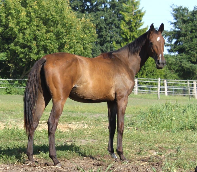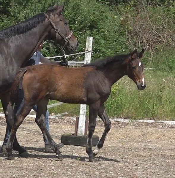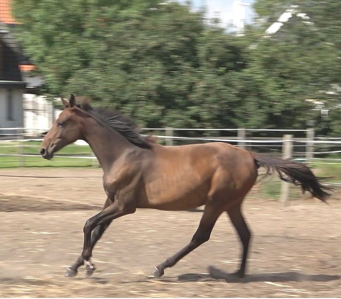 La nostra puledra di 2 anni, chiamata "Un piccolo pezzo di fortuna", è una femmina tipica, vivace e con un carattere amichevole e aperto verso l'uomo. Il suo sire, Quintessential, ha vinto il titolo di miglior stallone all'età di 3 anni, è stato vicecampione a Hannover e ha partecipato al Bundeschampionat. Il suo nonno, Danone II, con il celebre sangue da dressage De Niro/Donnerhall-Weltmeyer, ha suscitato grande entusiasmo ai tempi. Anche la linea materna, con Marlesko xx e Adler, si distingue e conferisce sangue, resistenza, talento nel salto e grande presenza. La cavalla ha tutte le carte in regola per avere successo sia nel dressage che nel concorso completo, ma anche come cavallo da leisure grazie al suo carattere affabile.