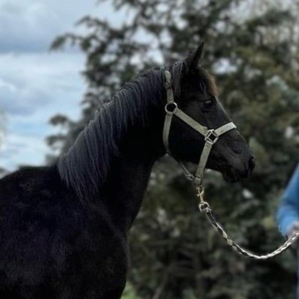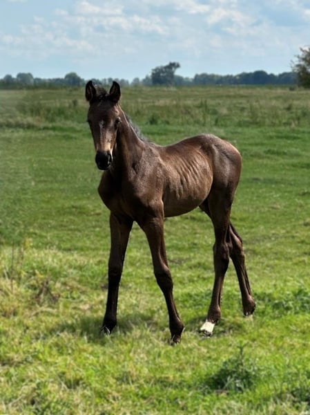This outstanding yearling filly by Bon Courage impresses with her enormous movement quality, her first-class lineage, and her charming character! She has three elastic basic gaits with plenty of rhythm, scope, and a powerful hind leg. The filly stands on a correct foundation and is developing exemplary. The filly is suitable as a young horse for advanced dressage sport. Due to her pleasant temperament, she will bring joy to both amateurs and professionals during her upbringing and further training. A top offer – directly from the breeder! The sire is the still young top stallion Bon Courage (Dressage Performance Center Lodbergen), who shapes this young dressage mare with beauty, enormous movement strength, and an excellent interior. Bon Courage started his career as a Hanoverian premium stallion, Hanoverian champion, and vice Bundeschampion. Age-appropriately, he is successful in S-level dressage, while internationally he is in high demand as an extremely high-quality sire. The dam of this promising young horse is back under saddle after her foal break and delights daily with a fantastic riding feel, charm, and joy in training. She is sired by the famous Grand Prix stallion For Romance I (winner stallion, main premium winner, finalist of the Nürnberger Burgpokal, VTV Dressage Stallion of the Year 2019, etc.). Through Future I (Florestan) and the Donnerhall sire Donnerwetter, she brings the essential rideability, willingness to perform, and athleticism into the pedigree. In excellent health, vaccinated, regularly dewormed, and regularly shod. Always friendly in handling. The yearling filly is in professional, species-appropriate upbringing with plenty of movement. We would be very happy to present this beautiful young filly to you on-site! A viewing is possible immediately. Feel free to contact us via WhatsApp: +49 176 55323449.
