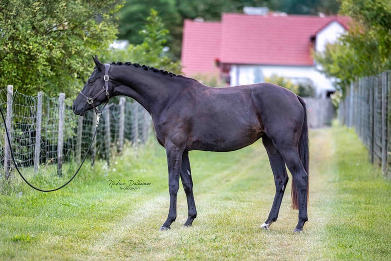 For personal reasons, I am parting with my 3-year-old mare "Milla Millenium." • 165 cm • Hanoverian • Black-brown • Location: Mainz I acquired the mare as a yearling – she is familiar with the saddle, bridle, rider weight, and lungeing, and is now being gently introduced to riding training. In handling, she is very well-behaved for her age. The mare has so far shown to be very well-mannered and open-minded with three very good basic gaits, with the walk and trot being particularly noteworthy. Milla is vaccinated, her teeth were recently done, and she has been regularly seen by an osteopath. There is a surgical insurance and a disability insurance for the mare, which can be transferred if needed. A vet check can be arranged if there is an intention to purchase. Milla's full brother (Morrison 5) was highly placed at the 2021 Verdener Championships, and her full sister is successful in dressage horses A. A beautiful training horse that deserves an age-appropriate education. Price range: 15,000 - 20,000 Euros Contact: 0176 641 649 32