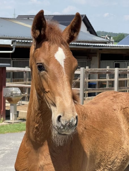 ✨ Exceptional Mare from a Proven Olympic Line A true gem for discerning breeders and ambitious riders: This typy mare, foaled in 2023, combines modern athleticism with one of the most prestigious maternal lines in German warmblood breeding. Pedigree: Ellis x Danone x Romancier Expected height: approximately 16.1 hh She already impresses with her correct conformation, harmonious appearance, and three above-average basic gaits. Notably, her elastic movement, active hindquarters, and natural rhythm make her ideally suited for a successful career in dressage. However, her true value lies not only in her quality but especially in her lineage: She descends from the highly decorated Dodone dam line, which has produced Olympic horses such as Rembrandt and Ahlerich, as well as the exceptional sire Rubinstein I. This line has stood for performance, rideability, and top-quality inheritance for generations. 💫 A rare opportunity to acquire a piece of proven breeding history. Whether for breeding or as a promising sport horse – this mare has everything needed to meet the highest standards.