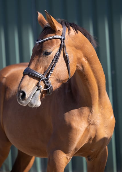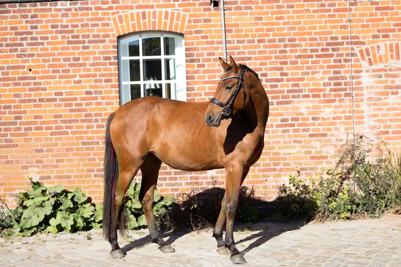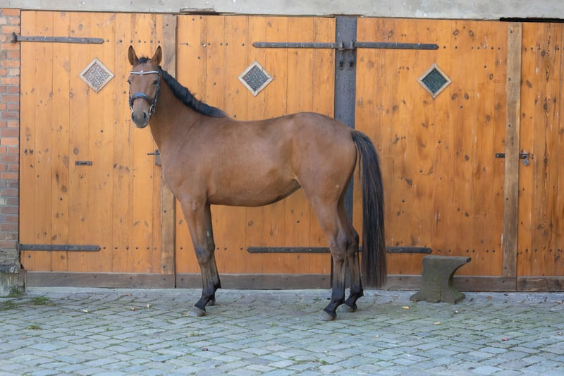 Diacara is a versatile mare sired by Dia Corrado out of Fishermans Friend. Given her age, she has not yet been extensively worked. She calmly performs all three gaits in the arena (done twice so far) and also in the field. During her first outdoor experiences on holiday, she met riders for the first time and was completely fearless and brave. She tends to lead the way and remains relaxed even when other horses canters off. She has also jumped over small logs without hesitation. I am happy to send videos upon request. Diacara was raised in a family environment and is very human-oriented. As a foal, she was brought along as a companion horse in the field and is familiar with various everyday situations, such as loud children on trampolines or tractors. I have also ridden her alone several times, and she has been able to be loaded independently and has waited calmly on the trailer on occasion. She currently gets along well in a mixed herd and is familiar with box and open stable management. Diacara is the perfect leisure partner, always eager to participate and happy to be involved. She also has the potential to become an excellent partner for sport. Her sire, Dia Corrado, was Reserve Champion at the 50-day test in Adelheidsdorf, earning top scores of 9.0, including for his temperament and overall impression. His rideability was also rated 9.0 by both the jury and an external rider. For his willingness to perform, he received the highest score of 9.5. He was the winner of the 14-day test in Adelheidsdorf, with a jumping index of 10.0 in free jumping. He scored 9.0 for character and willingness to perform, which contributed to his overall jumping score of 9.43. He completed the FN sport test with a score of 8.65 and received a 9.0 for his manners. So far, Diacara has shown a lovely manner and has never stopped in front of a jump, although she has not yet been extensively trained in jumping due to her age. She has been healthy with the exception of a minor hoof injury.