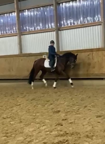 Verkauft wird aeine wunderschöne Hannoveraner Stute, geboren im Jahr 2022 von Fürst Zonik/ aus der Staatsprämienstute Delta von Dancier/ Wolkentanz. Filli Fee ist angeritten und überzeugt durch ihre elegante Erscheinung und ihr vielversprechendes Dressurtalent. Sie ist ein charakterstarkes Pferd, das ehrgeizig ist und sicher noch ein bisschen Zeit benötigt, aber genügend Biss für den gehobenen Dressursport mitbringt. Vor allem Galopp und Schritt sind hervorzuheben. Filli ist anderen Pferden gegenüber sehr sozial und läuft aktuell noch ohne Eisen. Sie kennt das Reiten auf dem Platz im Gelände und in der Halle und macht gerne Freispringen. Mit einem Stockmaß von 168 cm bietet sie ideale Proportionen für ambitionierte Reiterinnen und Reiter. Diese junge Dressurstute ist ein vielversprechender Nachwuchs für den gehobenen Turnierreitsport oder anspruchsvollen Freizeitreiter. Gute Röntgenbilder sind vorhanden Bei Interesse stehe ich gerne für weitere Informationen und eine Besichtigung zur Verfügung. 0174/5630008