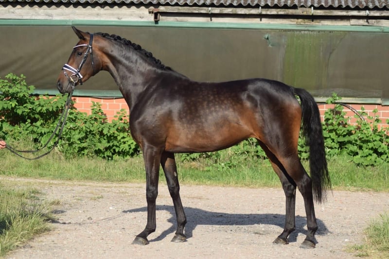 Elegant Young Dressage Mare with Great Potential Pedigree: Filou × Destano Gender: Mare Age: 3 years Discipline: Dressage This typy 3-year-old mare impresses with her excellent lineage (Filou – Destano) and harmonious conformation. She already demonstrates very good rideability under saddle and excels with three above-average basic gaits — a lively trot, a rhythmical walk, and a powerful canter. With her balanced temperament, eagerness to learn, and movement potential, she is the ideal young mare for an ambitious rider or for development in dressage sport. Features: Currently backed, consistently willing to work, and easy to handle Regularly presented to the farrier and veterinarian No vices, healthy, and correctly conformed X-rays of the back and neck are available. Directly from the breeder. Location: 29336