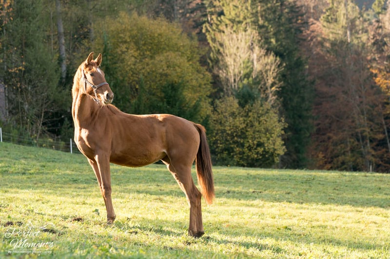 Belle jument Hannoverienne (ascendance : [Vitalis] x [August le Troisième]) qui séduit non seulement par son apparence, mais surtout par son caractère doux et gentil. Caractéristiques principales : Âge : 3 ans Taille : environ 1,70 m (16.1 hh) Niveau de dressage : actuellement en début d’apprentissage — habituée en douceur à la selle, à la longe, etc. Caractère & tempérament : Elle se montre au quotidien toujours à son meilleur, est lucide, honnête, curieuse d’apprendre et sans peur. Aspect extérieur & mouvement : Typique d’un Hannoverien, elle possède trois allures de base très correctes, avec une préférence pour le trot fluide et le pas ample. Elle possède l’attitude et le potentiel nécessaires pour la haute école. État général & autres informations : En bon état, conforme à la visite vétérinaire récente, sociable en troupeau et facile à gérer au box. Une inspection vétérinaire récente est disponible. Nous souhaitons pour cette magnifique jument un nouveau foyer respectueux, où elle pourra continuer à progresser et à s’épanouir. Intéressé ? N’hésitez pas à me contacter par message ou par téléphone.