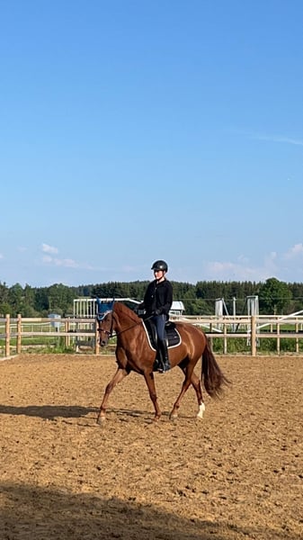 Race : Hanovrien Sexe : Jument Année de naissance : 2021 Couleur : Alezan Taille au garrot : actuellement 158 cm Discipline : Dressage avec potentiel de saut À vendre ou à disposition Nous vous présentons la magnifique jument hanovrienne Felicia. Une mise à disposition pour un cavalier ambitieux en compétition est également possible. Grâce à ses remarquables allures de base, elle souligne la lignée réussie de For Gold x Belissimo M. Âge approprié, la jument évolue à un bon niveau A, se montrant toujours motivée et désireuse d'apprendre, tant au travail à pied qu'avec le cavalier, et s'oriente vers l'humain face à de nouvelles tâches. Elle maîtrise sans problème le travail de base en dressage, le travail sur barres et les petits sauts. Lors d'une compétition de liberté, Felicia a obtenu la deuxième place, se présentant « élastique et léger dans son trot, avec une tendance naturelle à l'ascension au galop et un bon pas avec un bon antérieur et postérieur » (Bottani). Felicia a passé l'examen de performance des juments avec une note globale de 8,22, montrant un grand talent pour le saut. Lors des épreuves, la jument reste toujours calme et concentrée. Felicia est disponible pour des visites. Un essai est bien sûr possible sur rendez-vous. D'autres photos ainsi que des vidéos peuvent être envoyées sur demande. Pour un intérêt sérieux et d'autres questions, nous attendons votre message avec impatience ! Joignable au : +4915560581906 De préférence par WhatsApp ou par téléphone !
