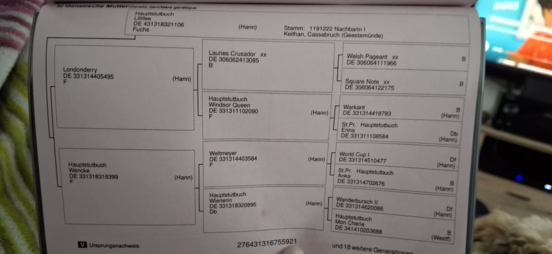 LONDONDERRYLAURIES CRUSADOR XX DE 306062413085WINDSOR QUEENWELSH PAGEANT XX DE 306064111966SQUARE NOTE XX DE 306064122175WARKANT V. WORLD CUP IERINA V. EIGNER