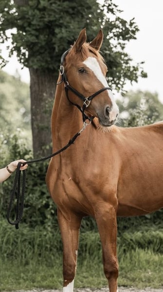 **Sales Advertisement: Beautiful Hanoverian Mare** For sale is a charming Hanoverian mare, born in 2022 by Shu Fu x Buckingham. She stands out as a strikingly colorful chestnut mare with plenty of white and a current height of approximately 165 cm. This talented mare shows great promise in the dressage field and already demonstrates significant potential. Her movements are elegant and fluid, with excellent mechanics and a strong hind leg. This makes her an ideal partner for ambitious riders. She is well-mannered, easy to handle, and has a friendly character. This mare is suitable for both leisure and competitive sports and will surely win the heart of any horse lover. If you are interested or would like more information, please feel free to contact me. Don’t miss this opportunity!
