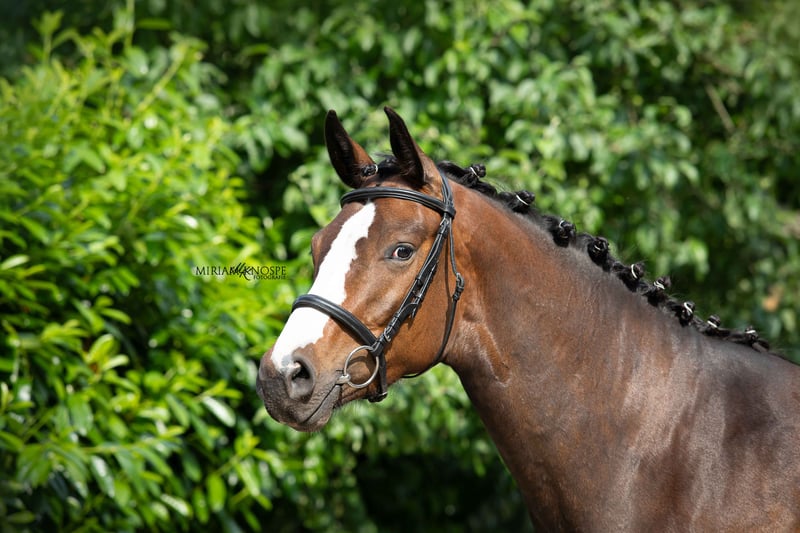 Vierjarige donkerbruine Hannoveraanse merrie, momenteel ongeveer 1,67 m hoog, ingeschreven in het Hannoveraner stamboek als driejarige. Ze beschikt over een onbevreesde, dappere en levendige karaktereigenschap en is opgegroeid in een intacte kudde met meerdere generaties. Opvallend is haar edele, expressieve hoofd. Ze toont goede basisgangen, een zeer regelmatige stap met goed zichtbaar overtrek en een goede draf vanuit de achterhand. Ze is veelzijdig en dressuurmatig aangelegd. Ze wordt sinds enkele maanden onder het zadel gereden en toont zich daarbij zeer werkwillig, makkelijk in de omgang en coöperatief. Haar zenuwsterkte, rust en kalmte (zie video met de deken) vormen een uitstekende basis. Ze zal een zeer goede partner worden voor de veeleisende recreatieve discipline. Röntgenfoto’s zijn beschikbaar en zonder risico bevonden. Ze wordt rechtstreeks door de fokker verkocht. Prijs in overleg. Contact: 01788688799.