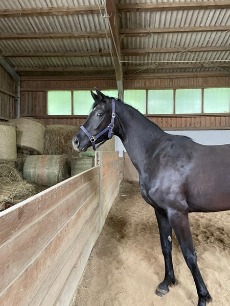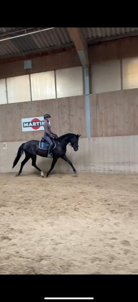 Zum Verkauf steht diese bildhübsche 3-jährige Rappstute namens Diva mit einem Stockmaß von etwa 167 cm. Sie besitzt einen herzensguten Charakter und möchte gefallen. Dies spiegelt sich vor allem auch in ihrem gutmütigen Umgang mit anderen Pferden und Menschen. Sie ist den Umgang mit Kindern gewohnt und zeigt allzeit ein tadelloses Verhalten. Die Gruppenhaltung auf der Weide stellt garkein Problem dar. Sie genießt es förmlich, mit ihren Artgenossen auf der Koppel zu spielen. Beim Anreiten zeigte sie sich brav und gelehrig. Sie verfügt über 3 sehr gute GGA mit einer starken hervorzuhebenden Hinterhandarbeit. Im Hinblick auf ihren aktuellen Ausbildungsstand und ihres jungen Alters ist sie jedoch kein Anfängerpferd. Sie benötigt ein gewisses Einfühlungsvermögen und eine unabhängige Reiterhand. Gut vorstellbar wäre ein Einsatz im Dressurviereck. Da sie voll im Wachstum steht, wurde sie nach dem Anreiten nochmal in die Koppelpause geschickt. Die Stute hatte kurze Zeit etwas sensibel mit ihrer Haut reagiert. Daraufhin wurde eine Blutuntersuchung durchgeführt und ein Zinkmangel festgestellt. Dieser Mangel kann über entsprechendes Zusatzfutter ausgeglichen und reguliert werden. Es liegt ein aktueller Röntgen-TÜV vor, der mit gut befundet wurde. Die Stute steht derzeit in 94227 Zwiesel und kann jederzeit gerne Probe geritten werden.