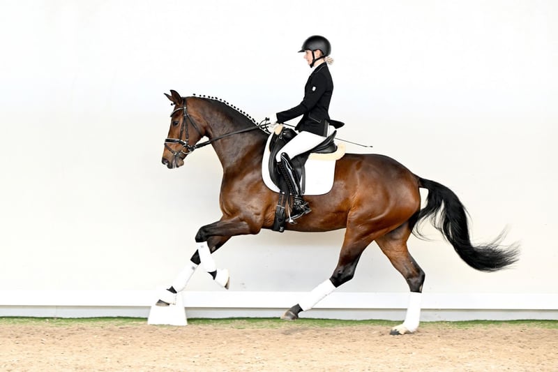 La Daisy, a four-year-old mare with an ideal frame, leaves nothing to be desired. Equipped with three outstanding basic gaits, she moves with elasticity through her entire body and impresses with natural impulsion, expression, and a clearly uphill tendency—exactly what one looks for in a modern dressage horse. For the future rider, this is a horse destined for higher levels. La Daisy possesses all the attributes required for a successful career in advanced sport, presenting herself with brilliance, charm, and a presence that captivates from the very first moment. Beyond her movement, it is especially her attitude that stands out: friendly, positive, and always focused on her rider. She is a horse that wants to work, thinks along, and gives her rider a feeling of confidence, harmony, and ease from the very beginning. Her pedigree is equally compelling: her sire La Vie represents international success, modern type, and exceptional willingness to perform. Through her damsire Desiderius L, she carries proven De Niro–Donnerhall blood, further reinforced by Donnerball as her granddam’s sire—a direct son of the legendary Donnerhall. This double genetic reinforcement of Donnerhall is no coincidence, but a true mark of quality. For decades, this line has stood for rideability, collection ability, and a natural talent for the highest levels of dressage—traits that La Daisy already demonstrates today, making her an exceptionally interesting prospect for ambitious riders. La Daisy combines everything one could wish for in a future top horse: quality of movement, strength of character, and an outstanding genetic foundation—a horse that not only impresses, but truly offers perspective.