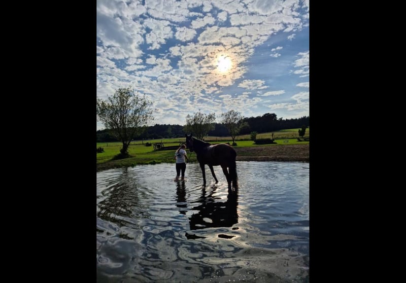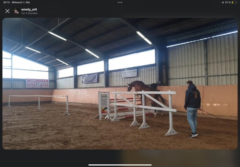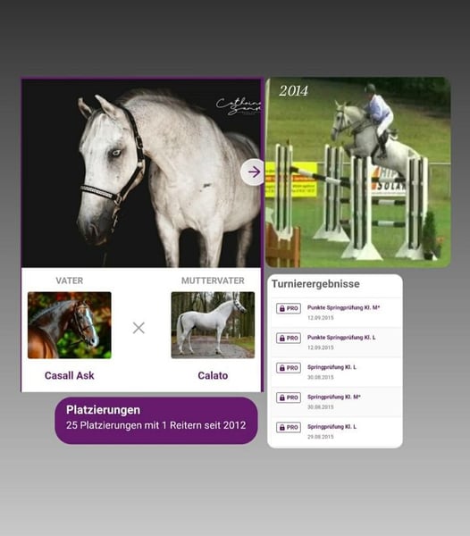 High Fly – Nachwuchstalent mit Herz und Verstand Stute | geb. 16.06.2021 | High Level x Casall x Calato | direkt vom Züchter High Fly ist eine außergewöhnlich sympathische und leistungsbereite Stute mit bester Spring- und Sportabstammung. Sie wurde im Januar 2024 schonend angeritten und zeigt sich seither in allen Bereichen als ehrliches, unkompliziertes und nervenstarkes Nachwuchspferd – ideal für den vielseitigen Einsatz. Mit ihrer klaren Leistungsbereitschaft, dem ehrlichen Charakter und ihrem ausgeglichenen Temperament ist sie nicht nur im täglichen Umgang ein absoluter Schatz, sondern auch unter dem Sattel ein Verlasspferd – selbst für Kinder oder Anfänger. Sie kennt Gelände, Wasser, Turniertrubel und bleibt dabei stets aufmerksam, aber unerschrocken. High Fly auf einen Blick: * Sicher im Gelände, kennt Naturhindernisse & Wasser * Turniererfahrung: auf E-Niveau vorgestellt, bereit für die nächste Saison * Dressur-, Spring- & Vielseitigkeitstalent – offen für jede Sparte * Absolut brav im Umgang: schmiede- und verladefromm, kinderlieb, nervenstark * Kann auch von Kindern geritten werden – ideal als Umsteigerpferd vom Pony * 1A TÜV vorhanden High Fly ist ein echtes Herzenspferd, das sowohl ambitionierte Nachwuchsreiter:innen als auch Familien glücklich machen wird. Ob im Dressurviereck, im Parcours oder im Gelände – sie macht überall eine gute Figur und schenkt ihrem Menschen stets Vertrauen. VHB / platz vor preis Faire Angebote sind herzlich willkommen Gerne kann ein Probereiten individuell vereinbart werden. Bei weiteren Fragen schreiben Sie uns einfach – wir freuen uns, von Ihnen zu hören. Mit freundlichen Grüßen.