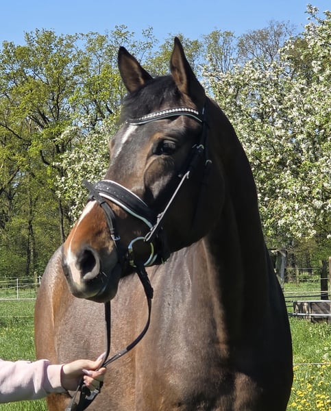 Siena es una yegua Hannoverana de aproximadamente 1,70 m de altura, con pedigrí de primera calidad. Viene directamente del criador. Siena tiene mucho potencial y posee un excelente conformación tanto exterior como interior, y sus cualidades de movimiento son por encima de la media. Bajo la silla, Siena siempre ha sido muy tranquila, realmente es una joya. Al cepillarla, montarla o colocarle las bridas, es muy calmada y sumamente segura. Desde diciembre de 2025, está montada de manera regular. La yegua es muy cariñosa y sociable con las personas, por lo que sin duda busca un vínculo familiar. También nos gustaría pensar que podría convertirse en una buena opción para jinetes en proceso de reintroducción, siempre y cuando alguien pueda seguir su entrenamiento. Siena no solo es una excelente yegua de doma, sino que también puede saltar muy bien. Tiene talento y una actitud maravillosa. Hasta ahora, Siena siempre ha gozado de buena salud. Para más información, estaremos encantados de recibir llamadas al 0177/2721831. Si está interesado en videos, por favor, contáctenos directamente por WhatsApp.