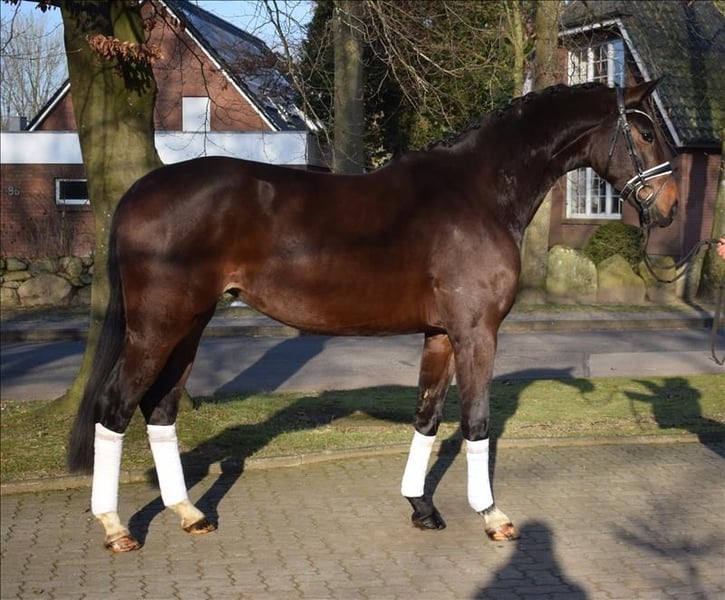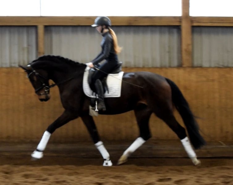 A fantastic training horse with excellent quality for the dressage arena and an unbeatable character! She has stunning movement and is very easy to work with. Lady Elchi is already ridden and consistently provides the rider with a wonderful riding experience. Equipped with plenty of energy, she already shows great potential for the future. She is also a real sweetheart in handling and is open to all kinds of fun. Lady Elchi was born with us and grew up in a herd with her peers. Due to her exceptional qualities, we are selling this outstanding mare well below value.