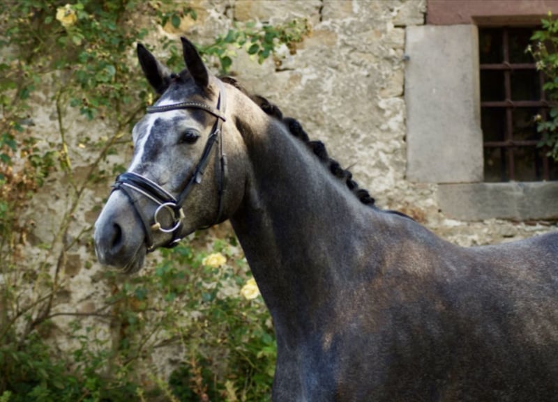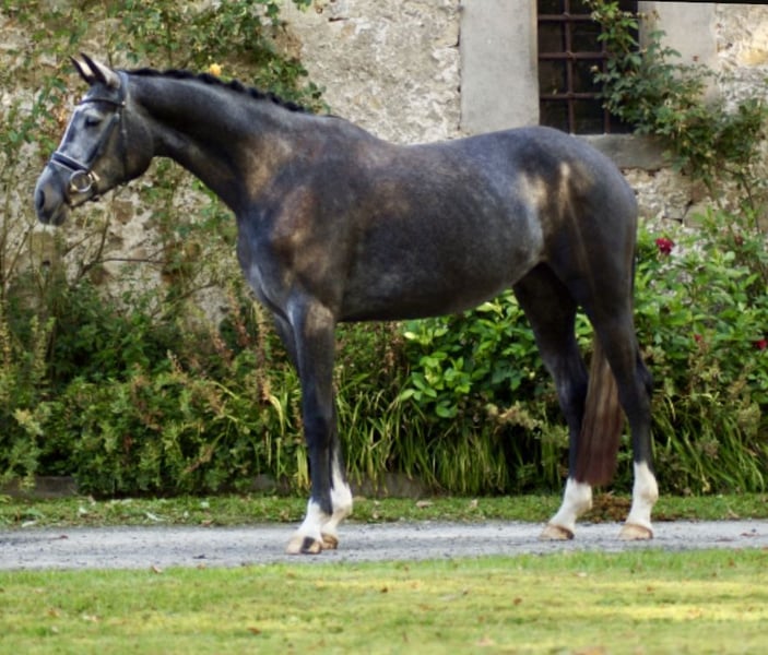 La trottola di tre anni, Diamond in the Sky, è un cavallo con un carattere davvero eccezionale. All'inizio dell'anno è stata messa in sella e, dopo una breve pausa di età, si presenta nuovamente da circa quattro settimane sotto la sella della sua giovane amazzone, che l'ha anche iniziata alla monta. Sempre educata e con un atteggiamento sportivo positivo, Dia ha già affrontato i primi salti a mano, oltre a aver superato con successo i primi salti sotto la sella, anche in un percorso di cross country. Si presenta sempre in modo semplice, equilibrata e dà molta gioia nel quotidiano. Per ulteriori informazioni, non esitate a contattarci al numero 0174/5630008. Aggiornamento: il cavallo dispone di un recente e molto buono certificato radiografico.